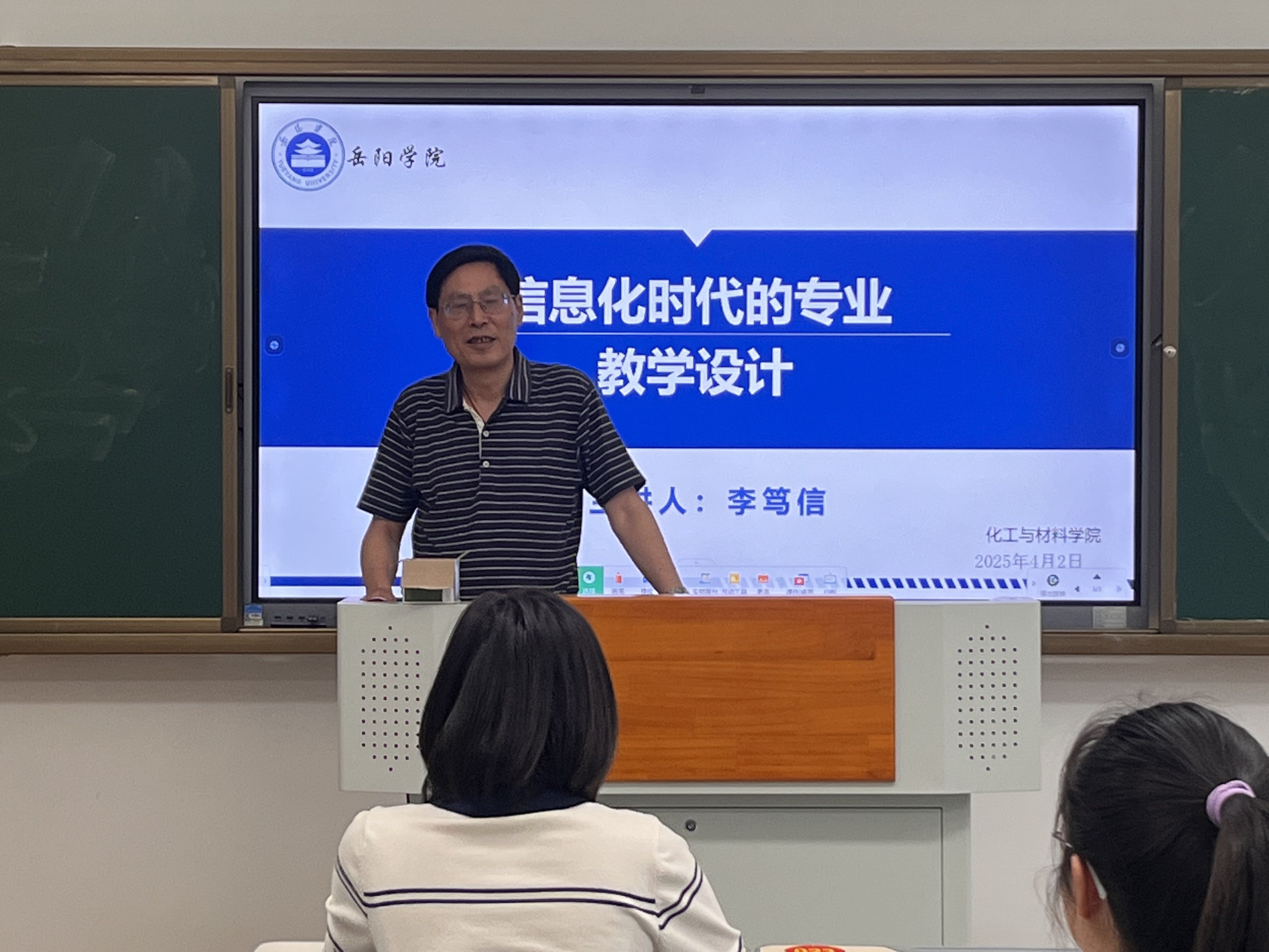 深入贯彻落实教育部《教育信息化2.0行动计划》,推动信息技术与教育教学深度融合,2025年4月2日,岳阳学院化工与材料学院在8107教室举办《信息化时代的专业教学设计》专题讲座,共同探讨数字化浪潮下的教学创新路径。学院全体教职工积极参加了此次讲座,讲座由方颖博士主持,院长李笃信担任主讲人。
